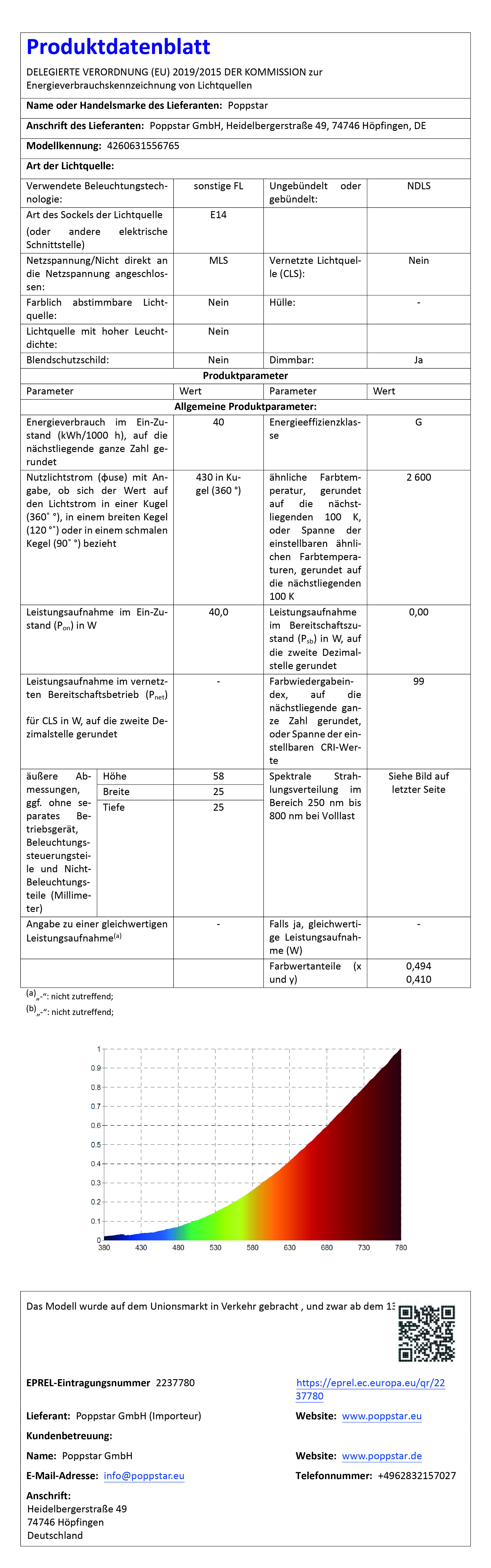- Lichtstrom: 430 lm